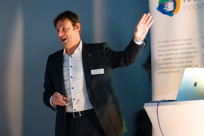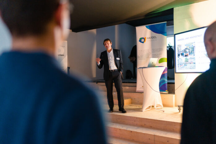 Eine Dauerausstellung informiert umfassend zu neuen Technologien und Anwendungen für den stationären Handel. Das Angebot umfasst Bereiche wie Digitalisierung, Künstliche Intelligenz, Mobilität und Nachhaltigkeit. Besucherinnen und Besucher können entsprechende Technologien persönlich ausprobieren und sich über Unterstützungsmöglichkeiten für die Umsetzung eigener Anwendungen beraten lassen.
